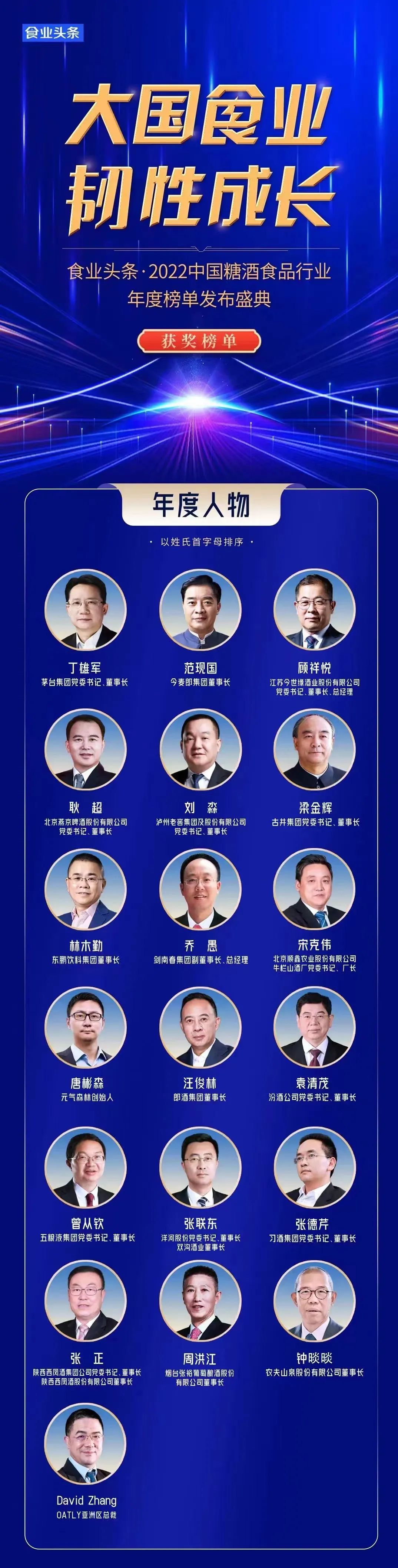 近日,“大国食业 韧性成长——食业头条·2022年中国糖酒食品行业年度榜单发布盛典”举行,北京燕京啤酒股份有限公司党委书记、董事长耿超当选2022年中国糖酒食品行业年度人物。