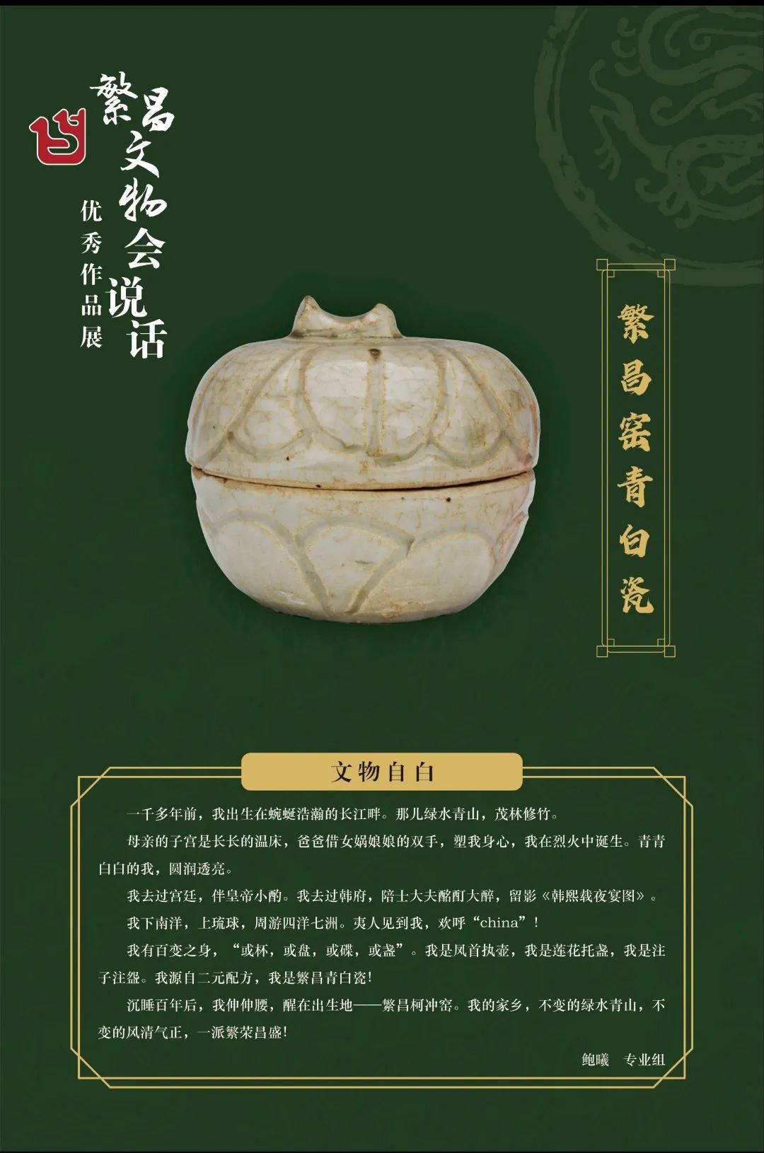 本次展览以“繁昌文物会说话”短文征集大赛小学组、中学组、专业组三个单元图文并茂形象生动向观众描绘繁昌文物故事故事。