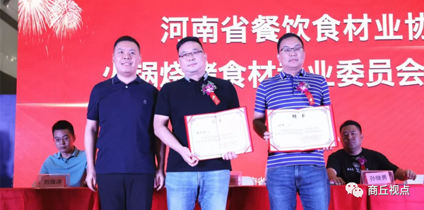 专委会会长郭永明,副会长王凯旭、钟辉共同为专委会的会员单位颁发证书,郑州市舒记餐饮有限公司、郑州军力餐饮管理有限公司、新乡市一圣捞火锅、平顶山三锅演义火锅、商丘市川江记忆鲜毛肚火锅、郑州红浪宇餐饮管理有限公司等一众优秀的餐饮食材企业上台接受证书颁发。
