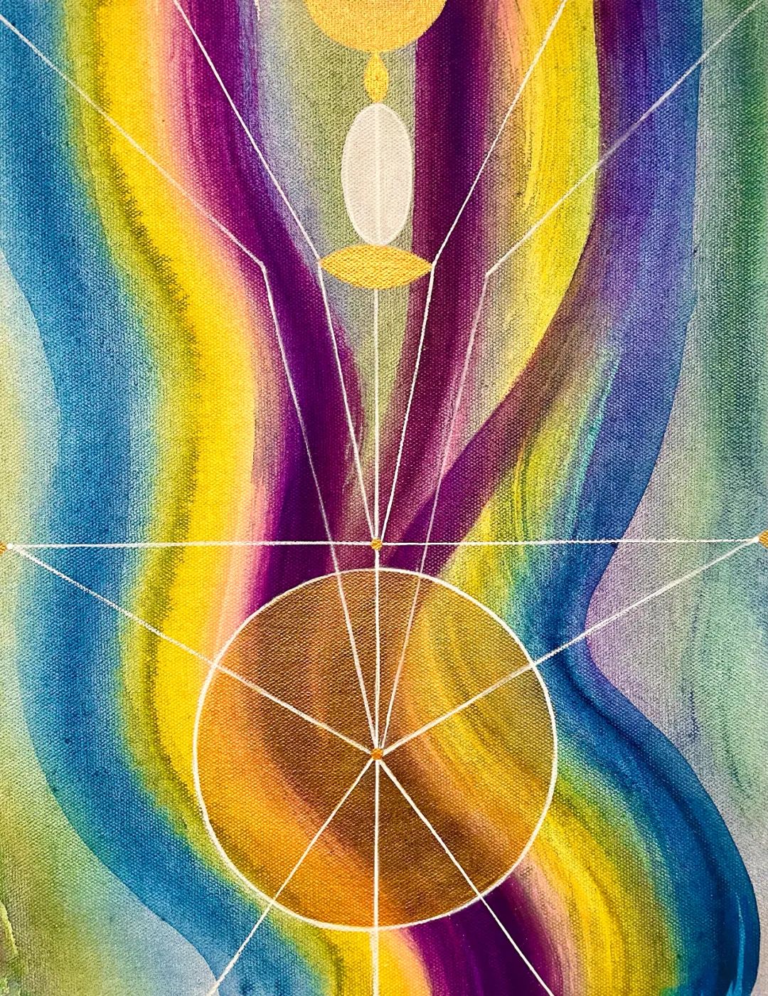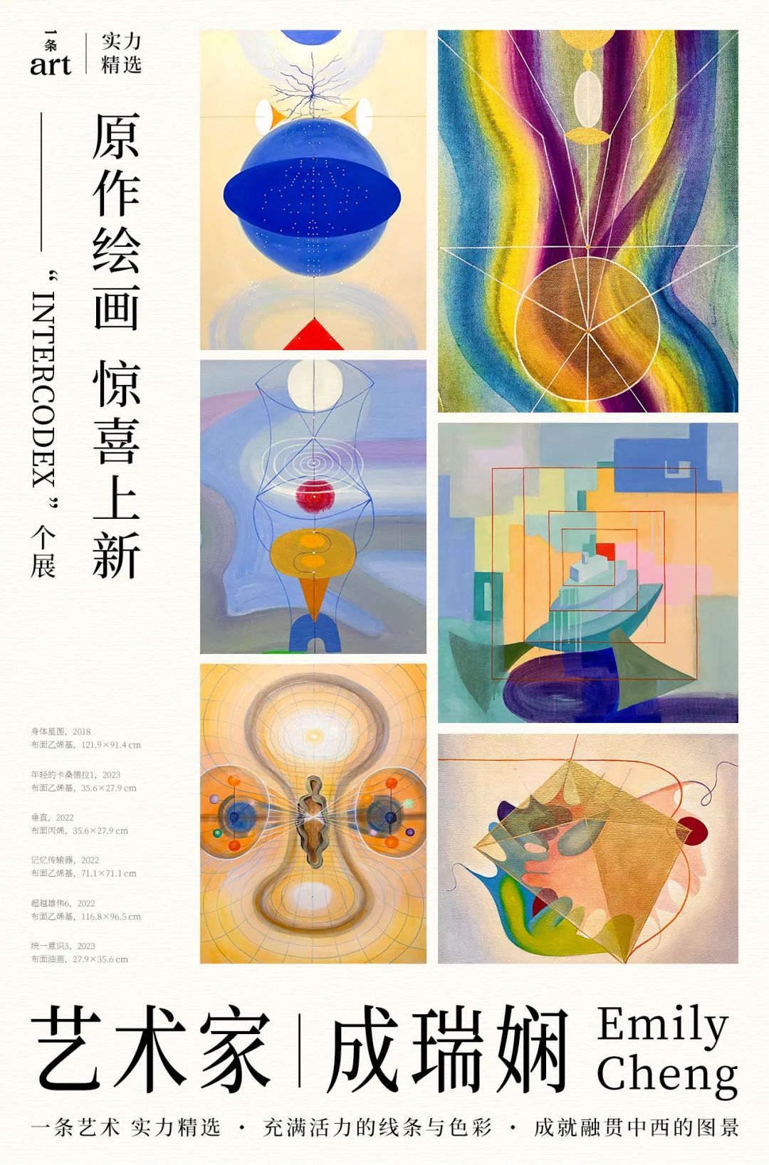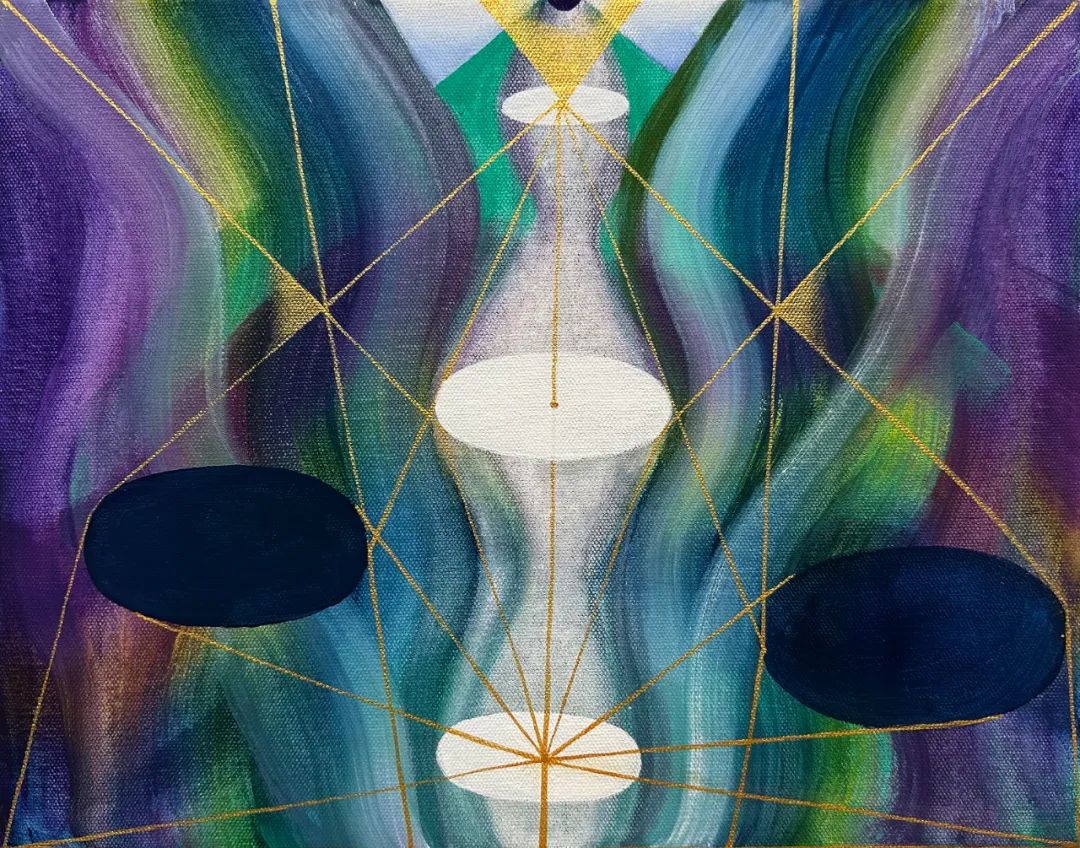 成瑞娴在古老文化与文明起源中,探求灵魂的平静,画面上浪漫的笔触与具有逻辑性的几何线条激烈碰撞,带有诗意的情感汇聚在画面中,形成绝美的色彩,让人流连忘返。