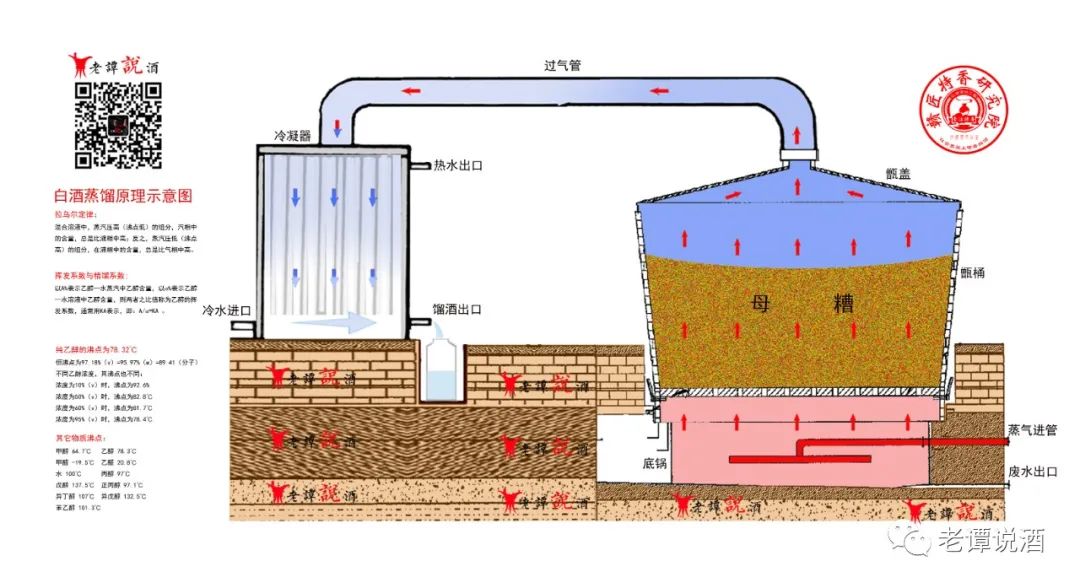 需要特别提醒的是,蒸馏千万不可照搬照抄,要根据自己的甑桶形状大小,糟醅情况,制定好属于自己的蒸馏方法,工艺参数。