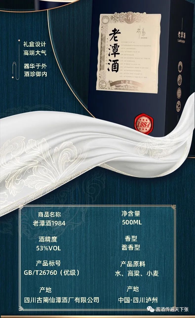 商品名称:潭53度 酱香型白酒 老潭酒1984纪念版 白酒 收藏赠礼迎宾酒水 单瓶装 500ml*1瓶