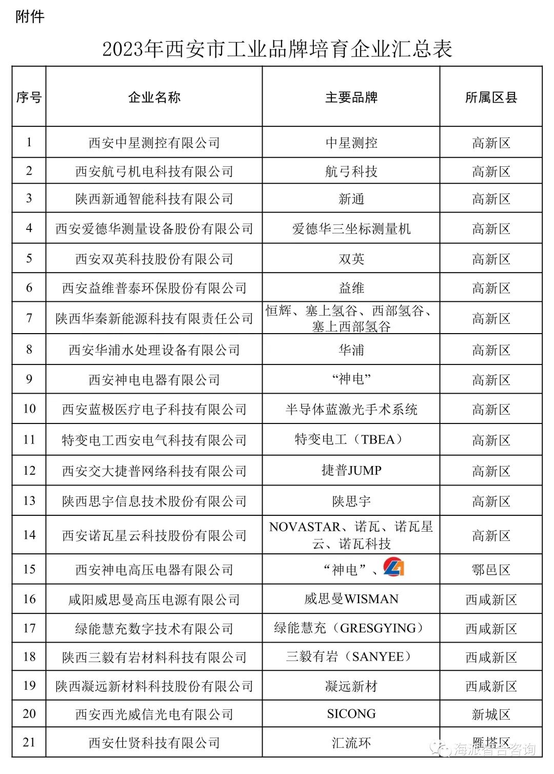 附件:2023西安市工业品牌培育企业汇总表.xls