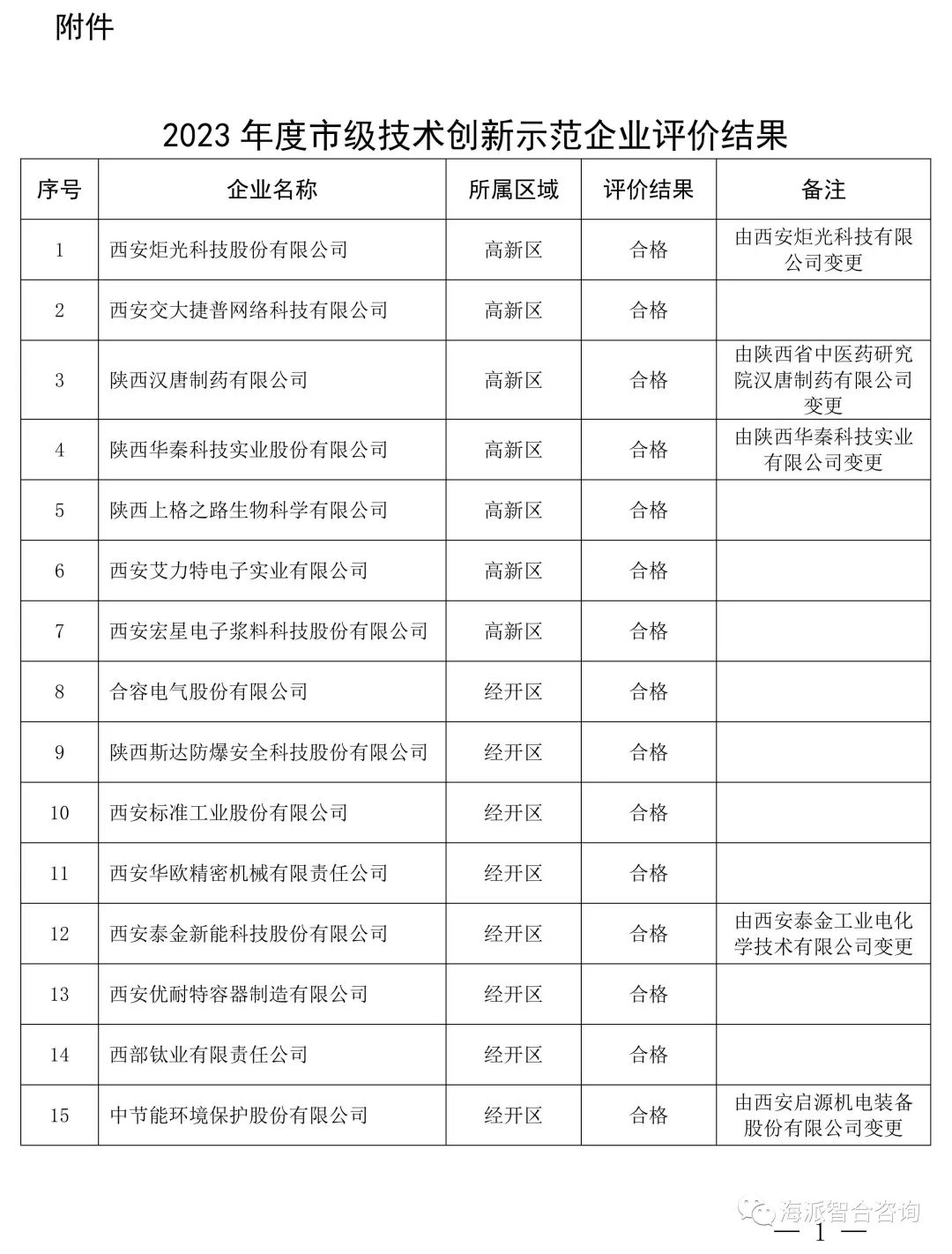 根据《西安市技术创新示范企业认定管理办法》(市工信发〔2021〕112号)和《西安市工业和信息化局关于组织开展2022年市级技术创新示范企业评价工作的通知》(市工信发〔2022〕90号),我局对2020年认定及评价通过的西安炬光科技股份有限公司等15户市级技术创新示范企业开展了复核评价,评价结果均为合格。