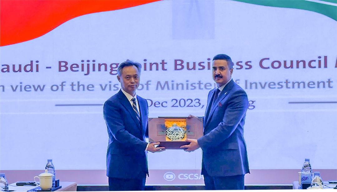 图:北京市贸促会和沙特-中国商务理事会互赠礼物。