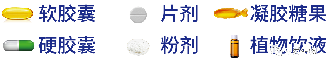 软胶囊、硬胶囊、凝胶糖果、片剂、粉剂、植物饮液