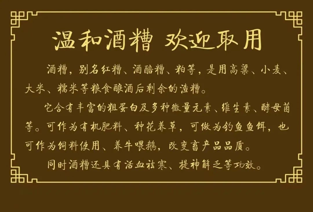 来温和酒业直销中心,不仅可以回忆从前的时光,还能免费拿酒糟!众所周知,酒糟中含有丰富的粗蛋白及多种微量元素,可作为有机肥料种花、养草,钓鱼,热敷缓解疼痛……只要来直销中心,酒糟随便拿!