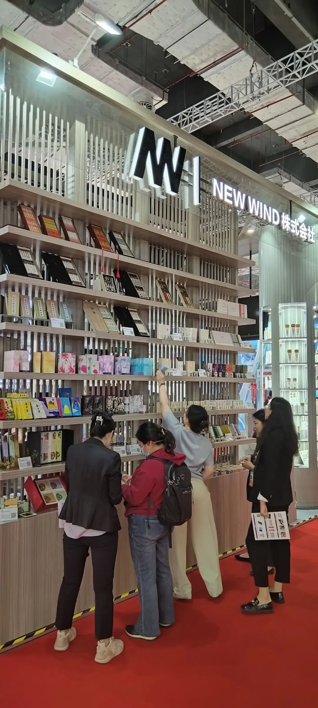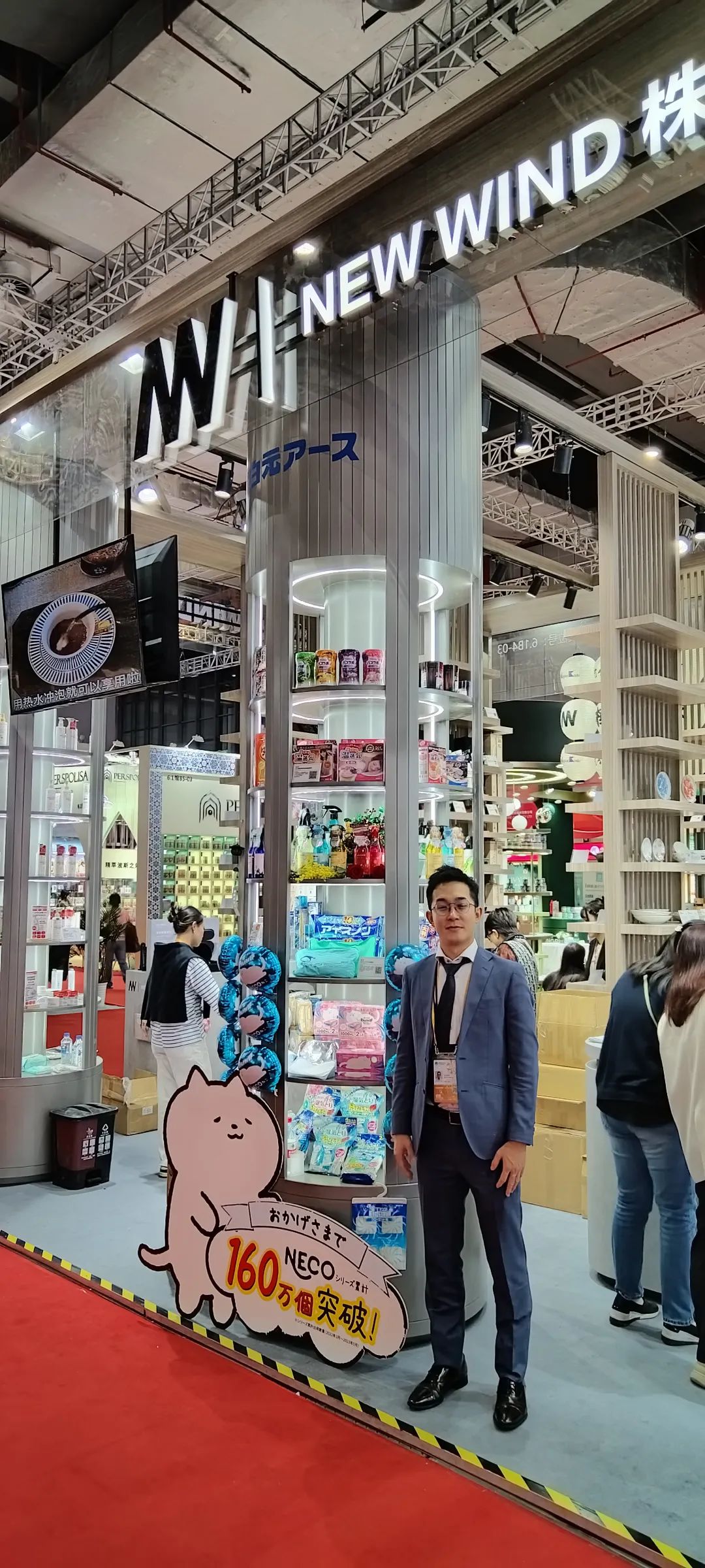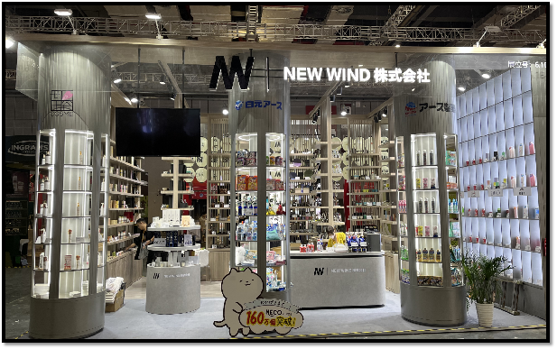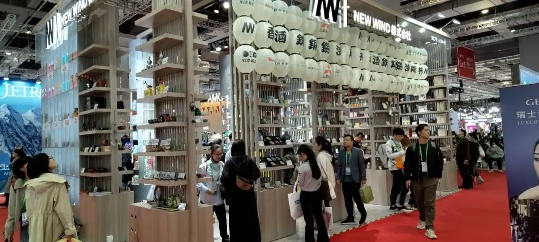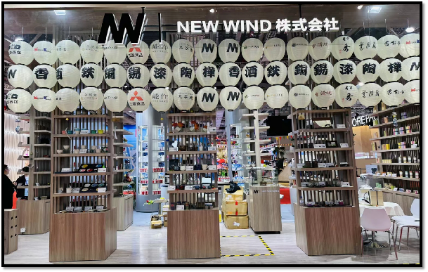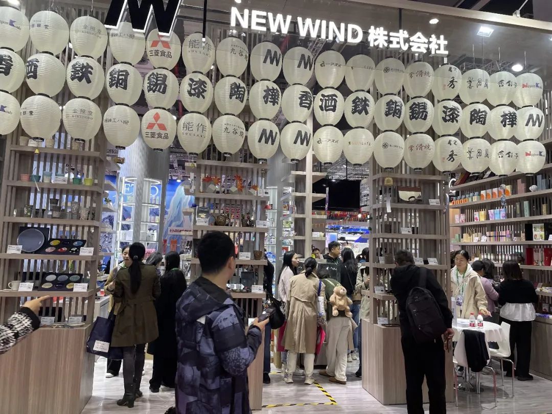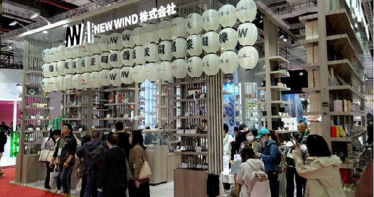 今年是以NEW WIND株式会社名义出展(展台号为6.1B4-03),带着家清,个护,美容仪,食品,饮料等15个日本人气品牌和香薰和铜器,漆器,瓷器,陶瓷,铁器,酒类等14个日本传统文化品牌与进博会的观众见面。展台如图所见,在日本文化浓郁的灯笼上写着出展的品牌名,别具创意。很多观众也纷纷来这里拍照,渐渐成了一个小小的网红打卡地。