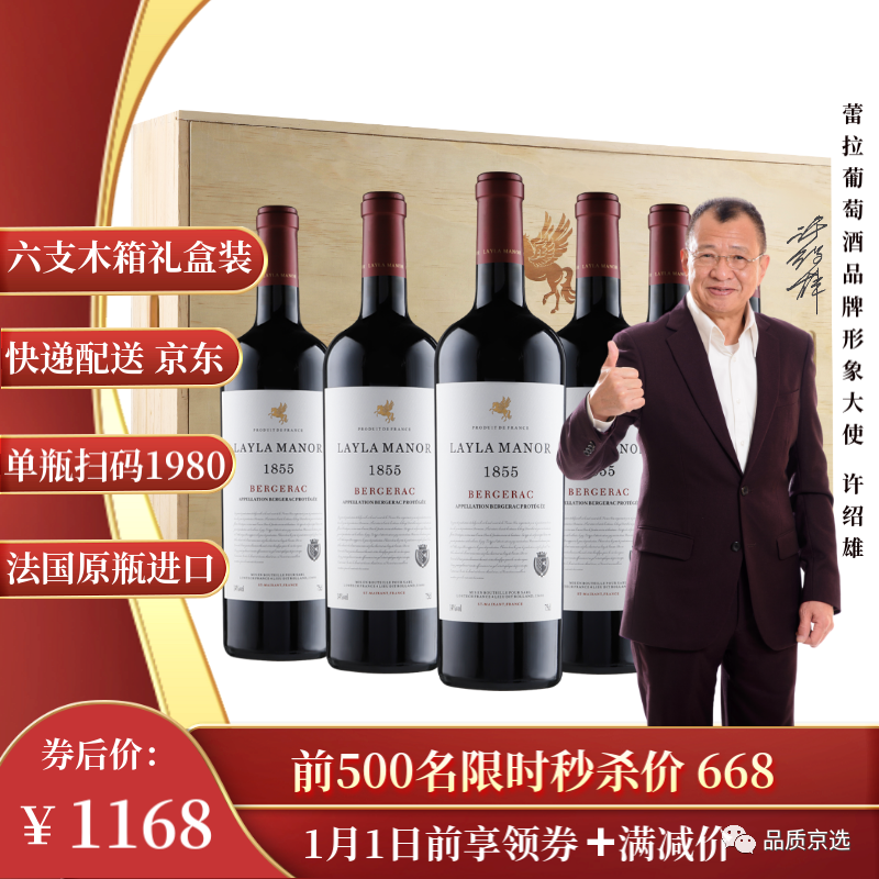 蕾拉【法国LAYLA MANOR】进口AOP级14度干红葡萄酒木箱礼盒750mlX6支