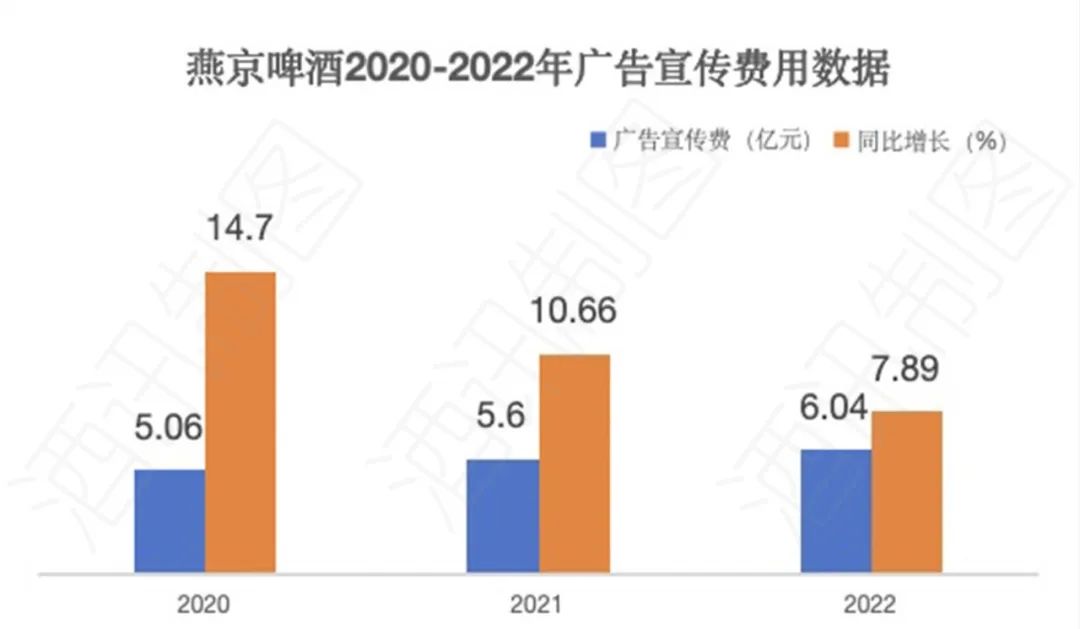 今年前三季度销售费用近6%增长仅仅是冰山一隅。酒讯梳理财报发现,2020年至2022年,燕京啤酒广告宣传费分别达到5.06亿元、5.6亿元、6.04亿元,同比增长分别为14.7%、10.66%、7.89%。虽然“顶流明星”营销战略的确让燕京啤酒吃到了不少甜头,但燕京啤酒选代言人的眼光也被投资者和业内诟病。