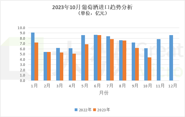 2023年10月葡萄酒进口趋势