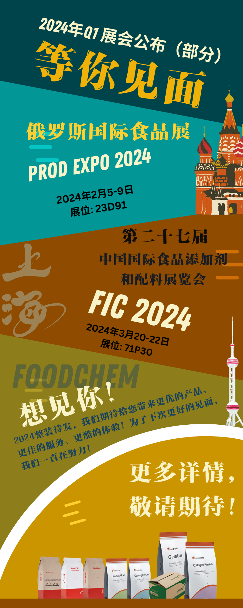 全年海内外展会就此完美落幕,由衷感谢我们的客户,战略伙伴及全球行业领袖。为了下一次更好地见面,Foodchem初心如一,始终坚持在路上。