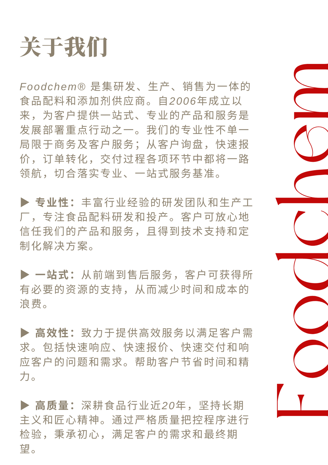 2024年,Foodchem将持续保持“乱云飞渡仍从容”的定力,“重整行装再出发”的豪情,“咬定青山不放松”的韧劲,“直挂云帆济沧海”的魄力。