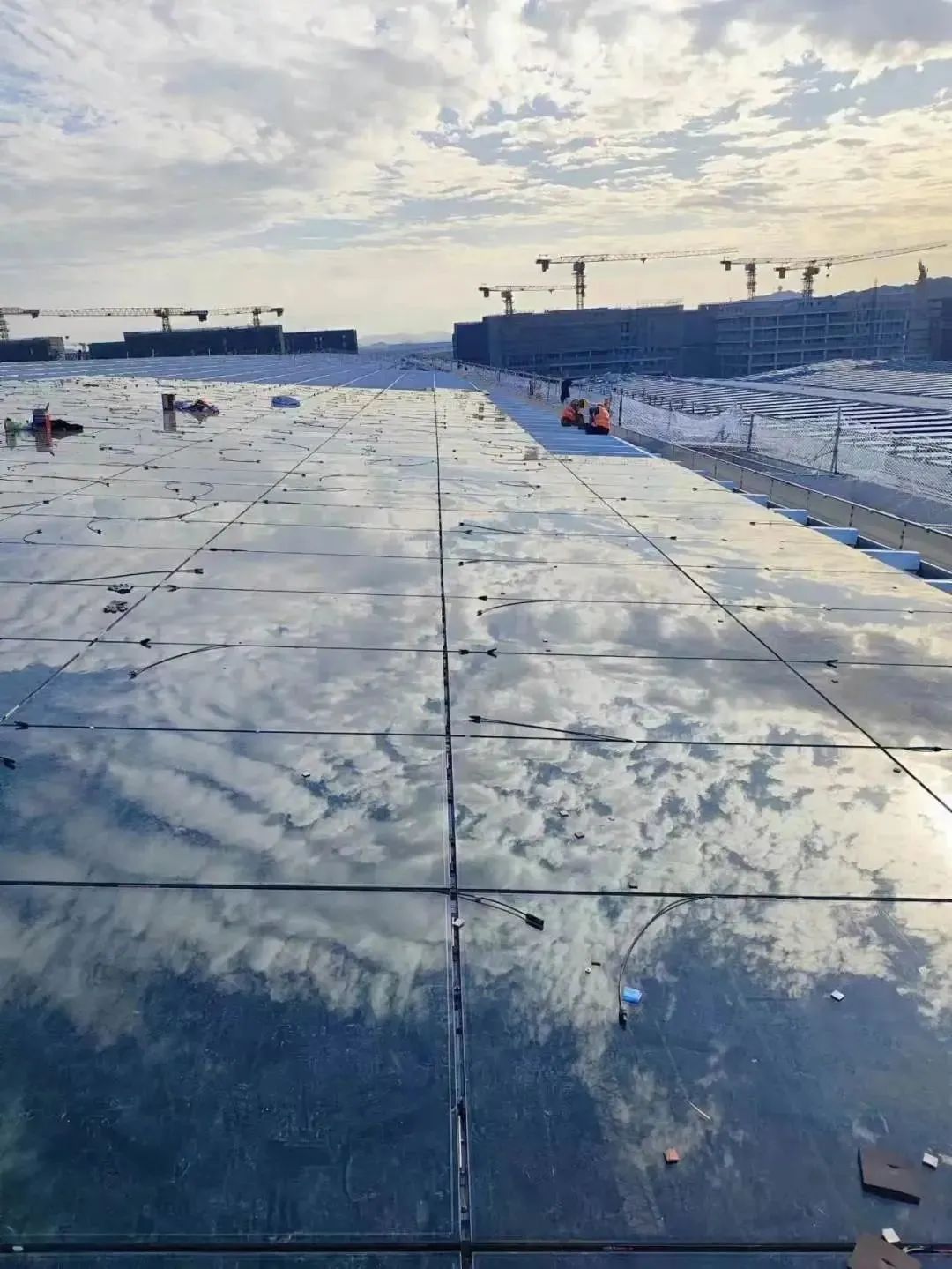 项目采用规格1180*1980mm碲化镉发电玻璃。室内室外条件下,碲化镉光伏玻璃都具有很好的稳定性和弱光性,在清晨、傍晚、积雪、积灰、雾霾等弱光条件下发电效率远高于传统硅光伏组件。