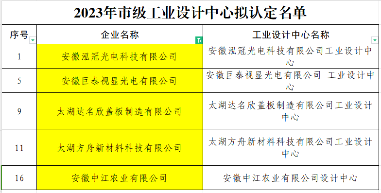 根据《关于组织开展2023年市级工业设计中心认定及复核工作的通知》(安经信产业函〔2023〕78号)文件精神,市经信局组织开展了2023年市级工业设计中心认定及2021年市级工业设计中心复核工作。经研究,拟认定安徽泓冠光电科技有限公司、安徽省三环康乐包装材料有限公司等18家企业的工业设计中心为2023年市级工业设计中心,安徽津野数控科技有限公司、安庆一枝梅化工有限责任公司等11家企业的工业设计中心通过2021年市级工业设计中心复核。现公示如下,请社会各界监督。如有异议,请以书面形式实名反馈至安庆市经济和信息化局。