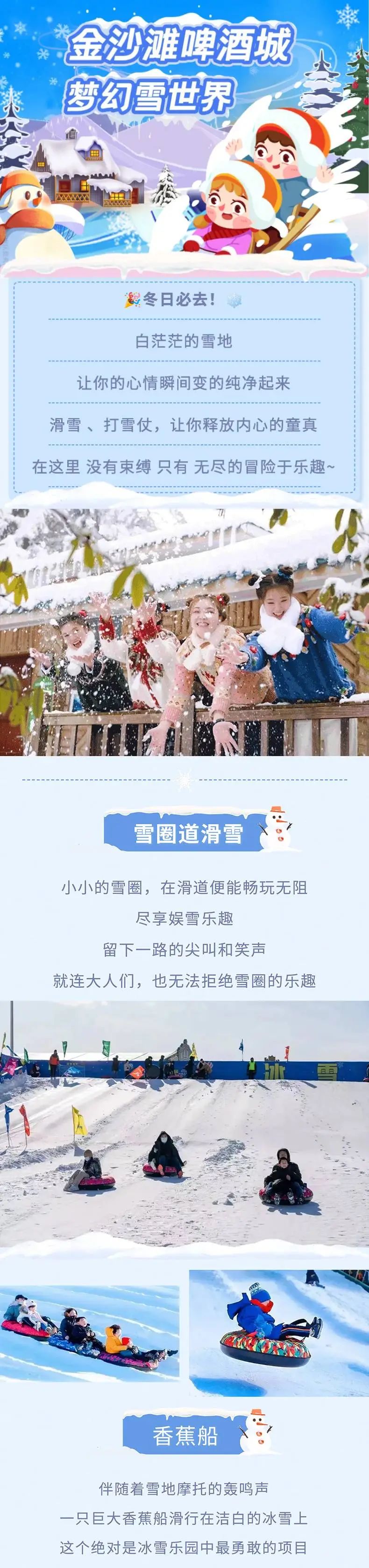 【金沙滩啤酒城梦幻雪世界】单人门票+雪圈(含十余项免费项目)仅需29.9元,元旦畅玩不加价!有效期为2023年12月28日——2024年1月14日