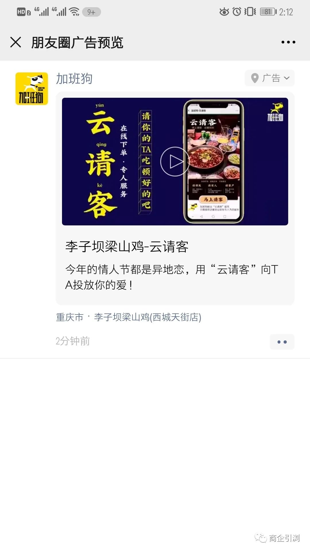 朋友圈广告+“云请客”,实现快速传播