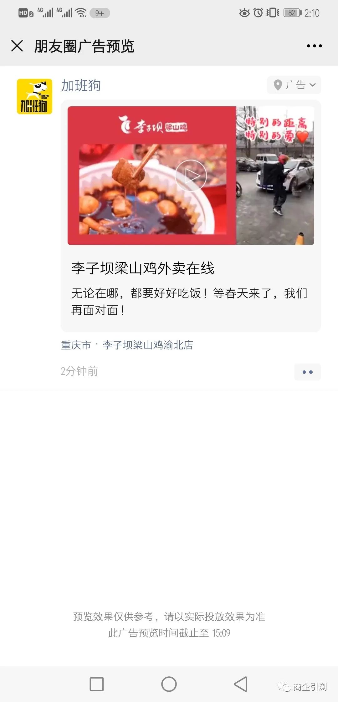 疫情期间李子坝梁山鸡的朋友圈广告外层及内层页面展示