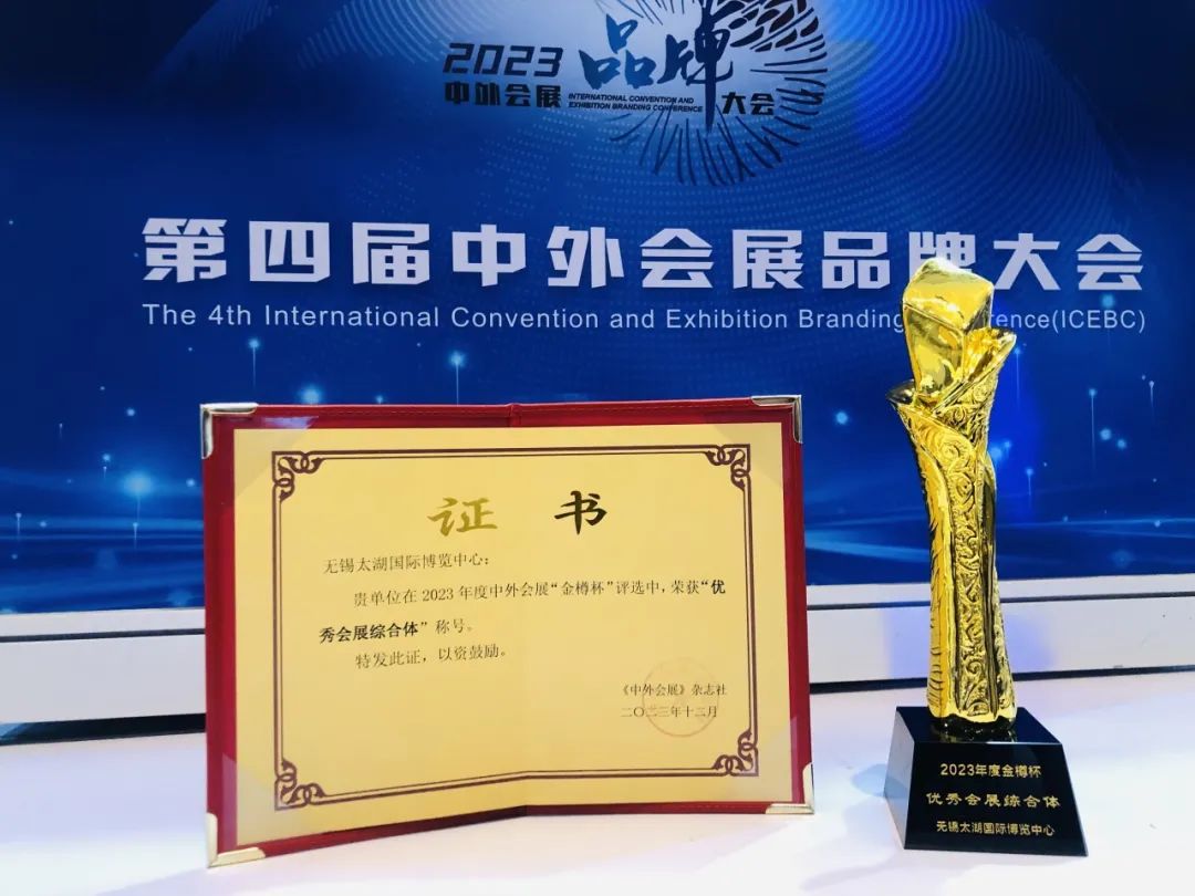 12月13日晚,在“金樽奖”颁奖典礼上,无锡太湖国际博览中心喜获“2023年度金樽奖-优秀会展综合体”奖项!这不仅是对无锡太湖国际博览中心服务的肯定,更是进一步提升品牌影响力和竞争力的激励与鞭策。
