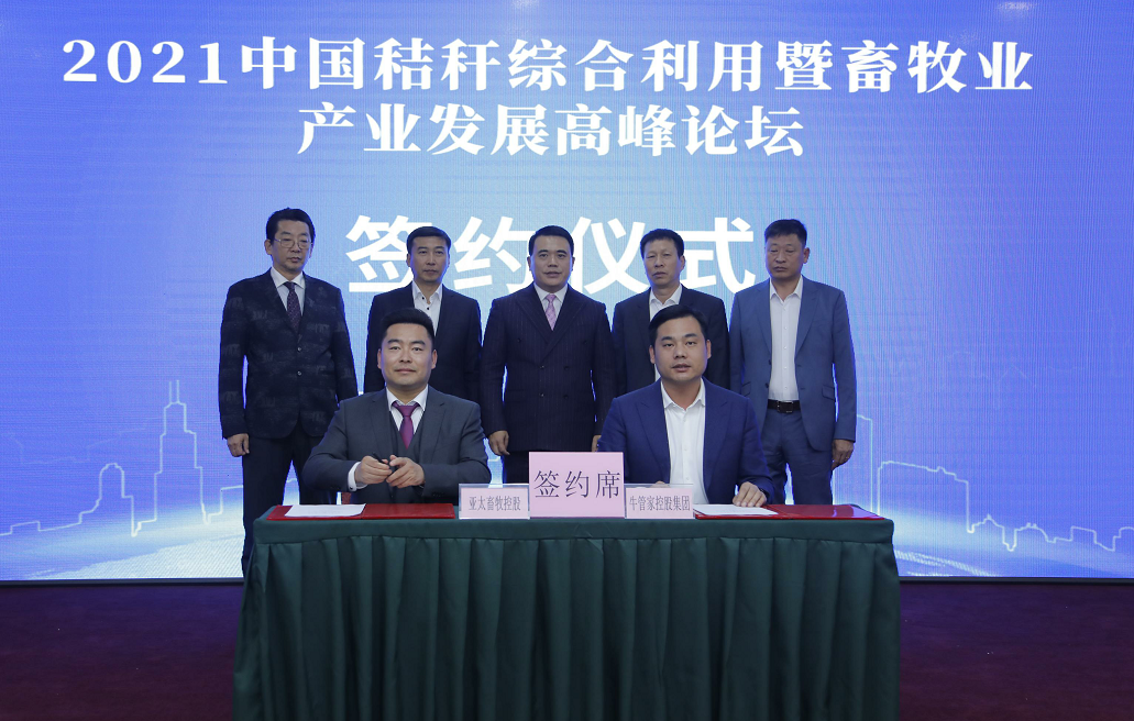在论坛中秸秆控股集团分别与吉林省皓月集团、亚太畜牧控股、澎湃集团等畜牧业龙头企业签署项目合作协议,亚太畜牧集团与牛管家控股集团签署种牛引进协议,发挥各自优势,强强联合助力吉林省“秸秆变肉”工程。