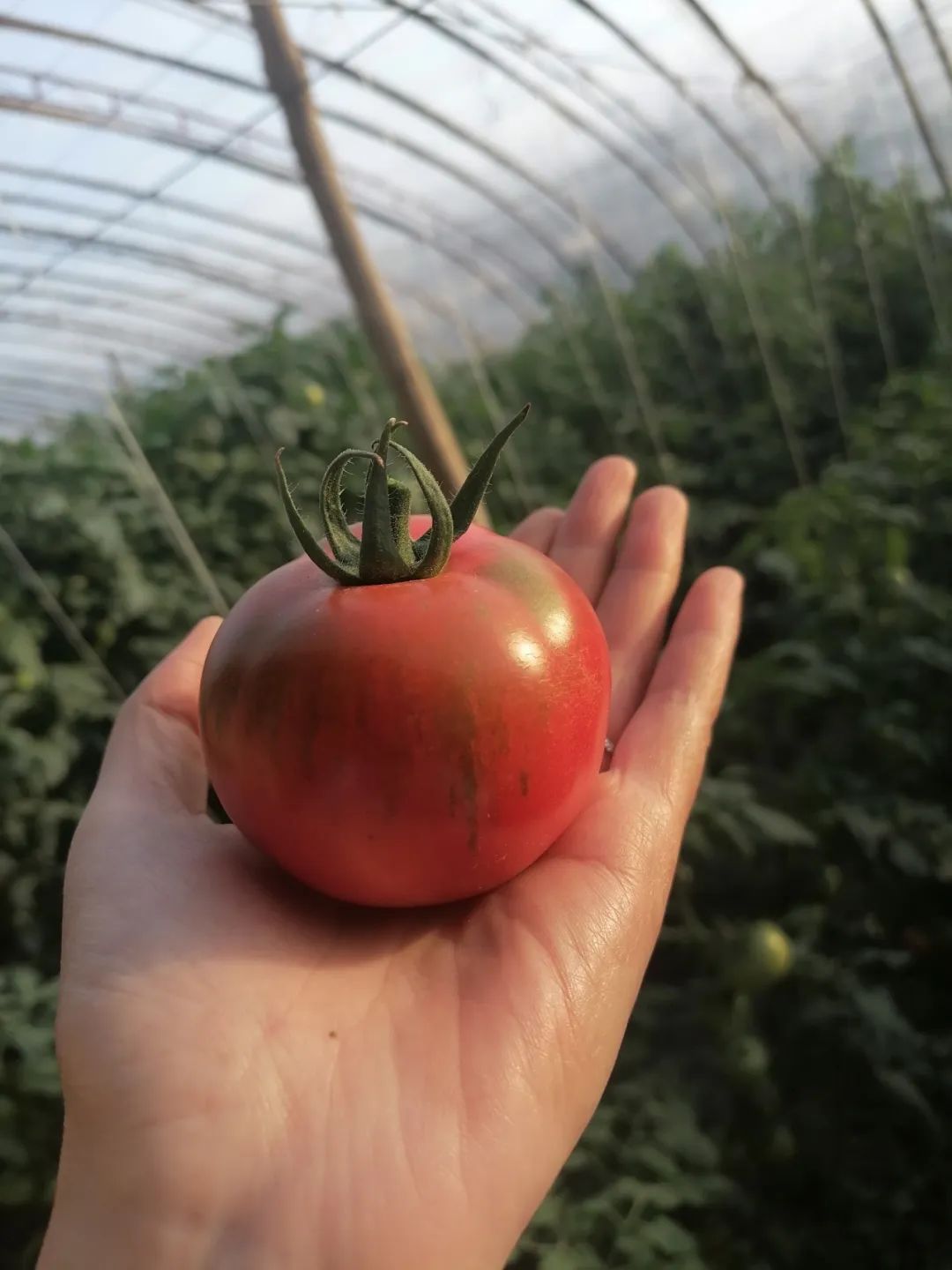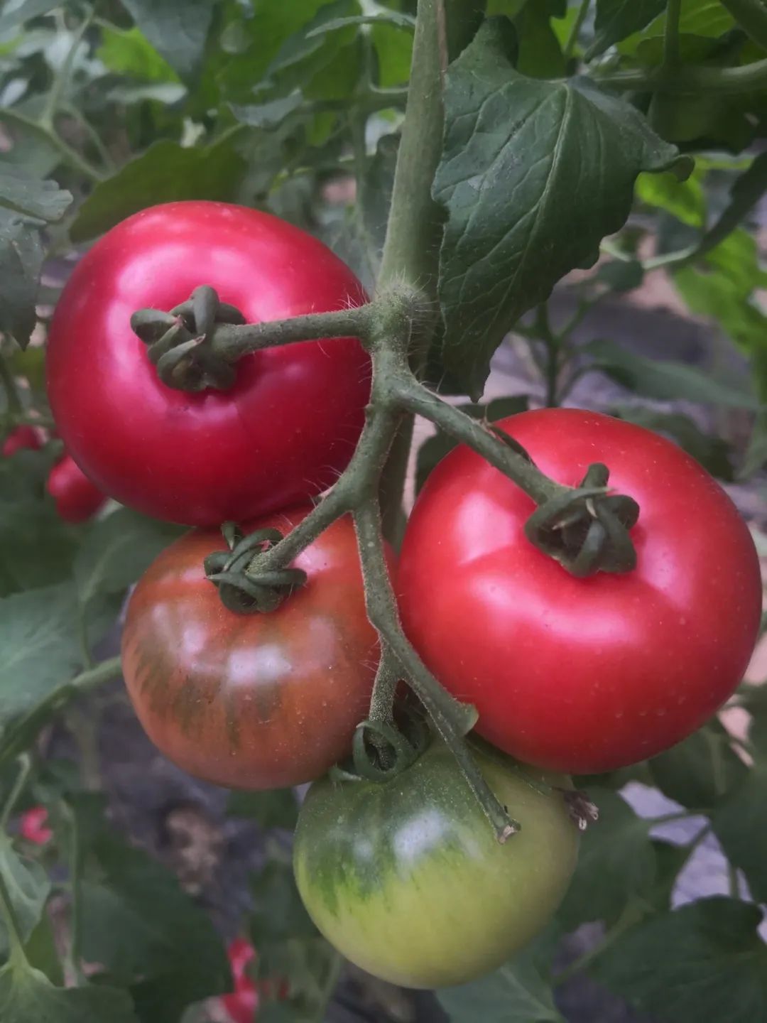 无限生长类型水果番茄品种,果实苹果形,单果重80-120克,粉红色带绿肩,完全成熟绿肩消失,汁浓酸甜,独有番茄的香味,回味甘甜。
