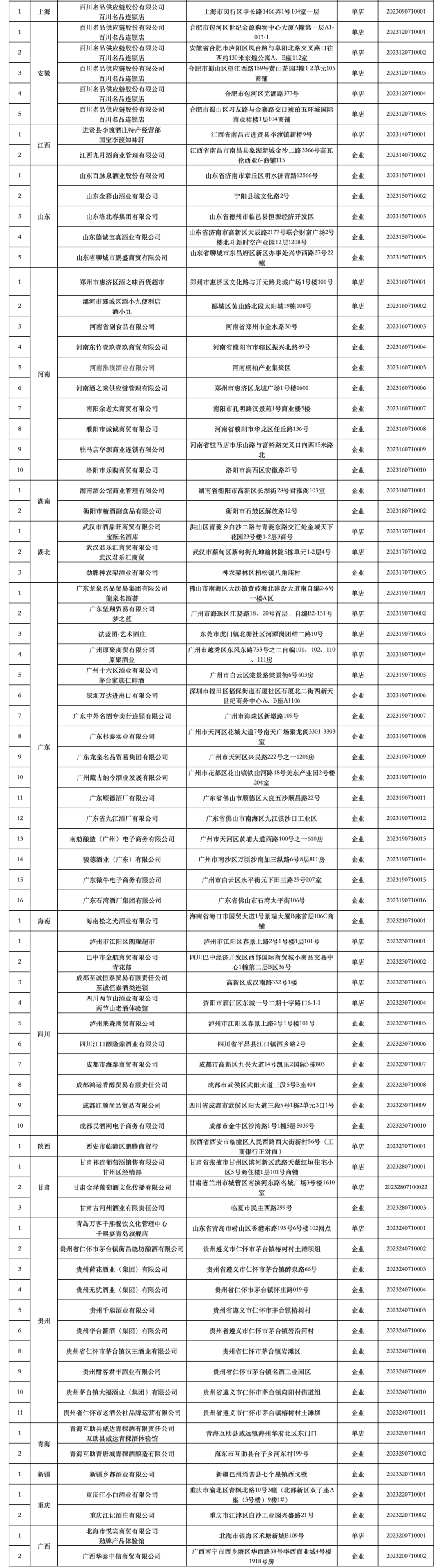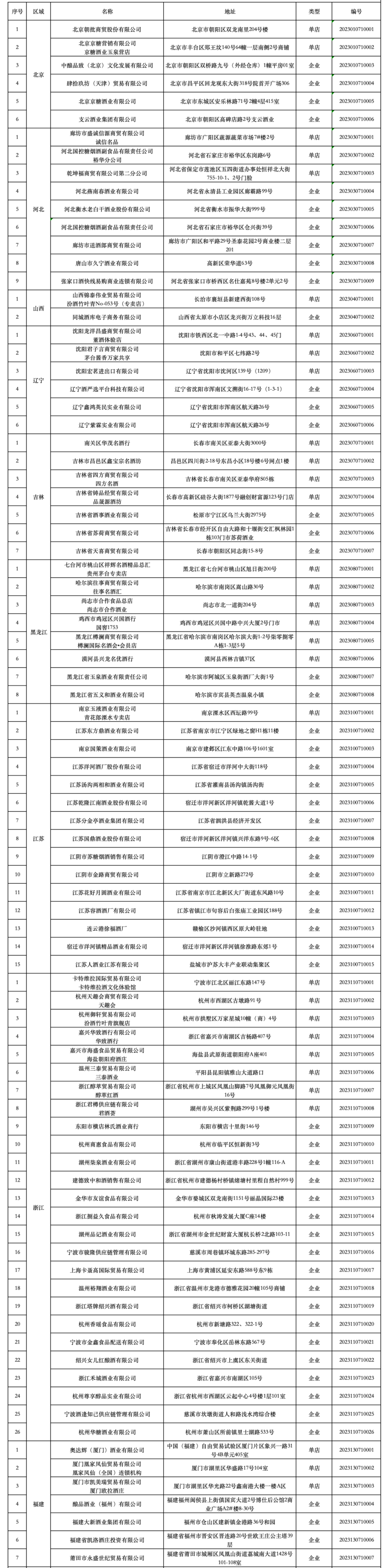 附:2023年全国放心酒工程示范单位名单