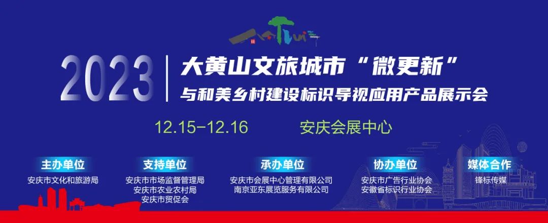 2023大黄山文旅城市“微更新”与和美乡村建设标识导视应用产品展示会将于明日在安庆会展中心开展!