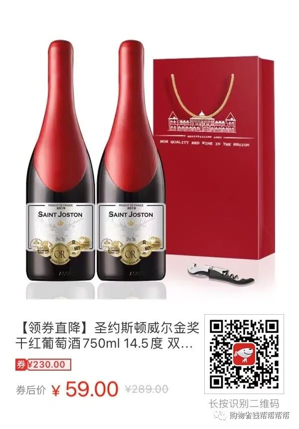 【京东】【领券直降】圣约斯顿威尔金奖干红葡萄酒750ml 14.5度 双支礼袋装