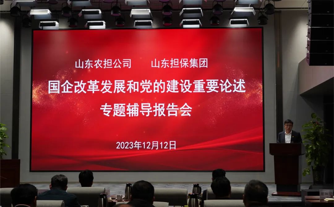 为进一步加强和完善国有企业改革发展和党的建设工作,12月12日,山东农担公司、山东担保集团共同举办专题辅导报告会,山东省委党校(山东行政学院)马克思主义学院院长林学启作“国有企业改革发展和党的建设重要论述”专题报告。