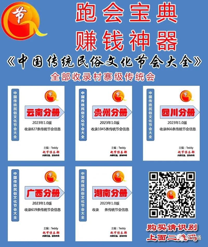 【节会通】微信公众号创办于2018年3月,我们围绕“节”、“会”主题,每天坚持免费发布全国各地有代表性的“节会信息”,成为国内为数不多的较有影响力的节会信息自媒体发布、服务平台,也获得大量节会行业企业和人士的喜爱和认可。五年的积累,我们建立了【中国节会大数据库】,并开始编辑《中国传统民俗文化节会大全》、《中国庙会大全》、《中国节会举办场地名录》三套大型丛书,其中《中国传统民俗文化节会大全》【广西分册】、【贵州分册】、【云南分册】、【四川分册】已经和大家见面,而【湖南、湖北分册】也将在今年年底以前编辑完成。在节会信息的发布方面,除【会员群】每天正常发布大量的节会信息外,我们新建的【江湖信息群】每天分享大量江湖会信息,同时也新建了【展会信息群】和【音乐节信息群】正在扩展相关领域的信息发布。由于受公众号每天发布次数和篇幅所限,我们创建了【节会通会员群】,为赶节、赶会需要大量节会信息的人士服务,每天为大家提供更多的节会活动信息。