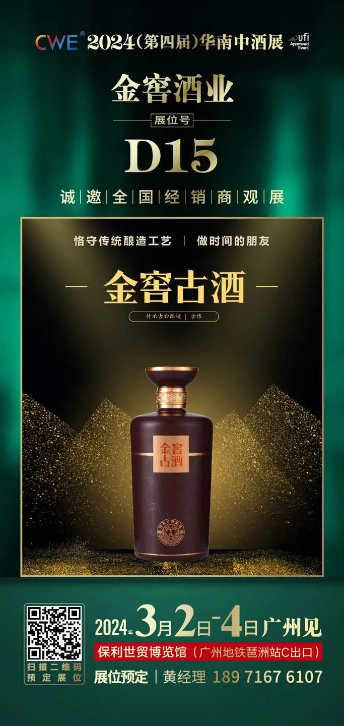 金窖酒业确认参加2024年3月2日-4日在广州保利世贸博览馆举办的2024(第四届)华南中酒展!