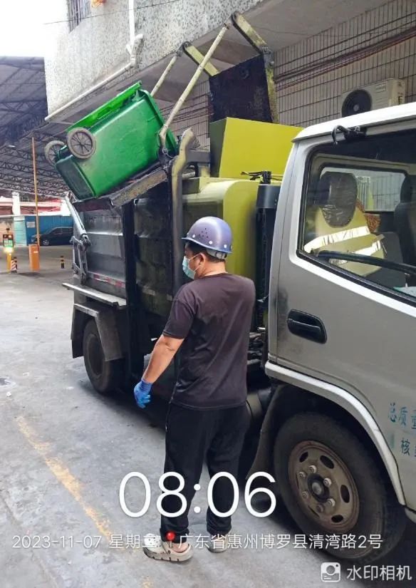 环卫部门收集厨余废水现场图片