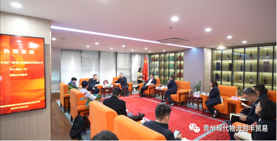 2023年12月13日,贵州茅台酒厂(集团)保健酒业有限公司(以下简称茅台保健酒业公司)党委委员、副总经理李大利,贵州茅台酒厂(集团)保健酒业销售有限公司(以下简称茅台保健销售公司)副总经理陈光全、贵州省区经理马晓杰、总品部经理范智毅一行,莅临贵州现代物流润丰贸易发展有限责任公司(以下简称润丰公司)调研座谈。润丰公司党支部书记、执行董事张炸力,总经理凌盛参加此次调研座谈。