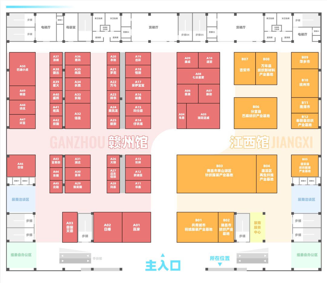 作为本届服博会重要活动之一的2023江西(赣州)纺织服装产业供应链展在中国(赣州)国际会展中心举行,展区近3万平方米,参展商近200家。展览规划为“七馆+三中心”,“七馆”分别为江西馆、赣州馆、智能设备馆、面辅料馆、创新设计馆、产业主题馆、优质制造馆;“三中心”分别为时尚发布中心、会议中心、综合中心。