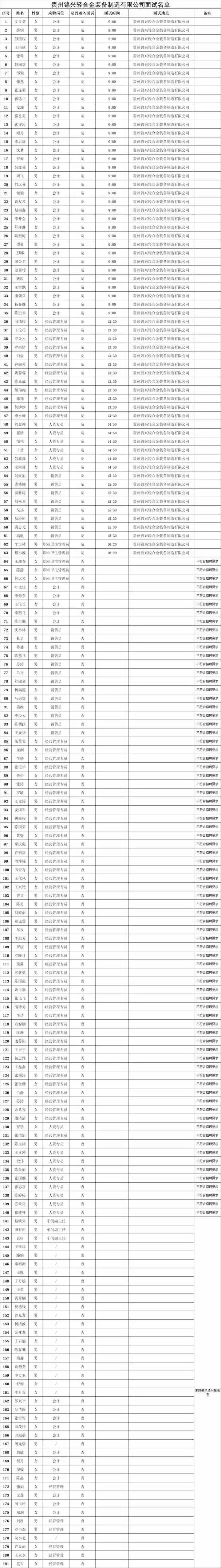 见附件《贵州锦兴轻合金装备制造有限公司面试名单》