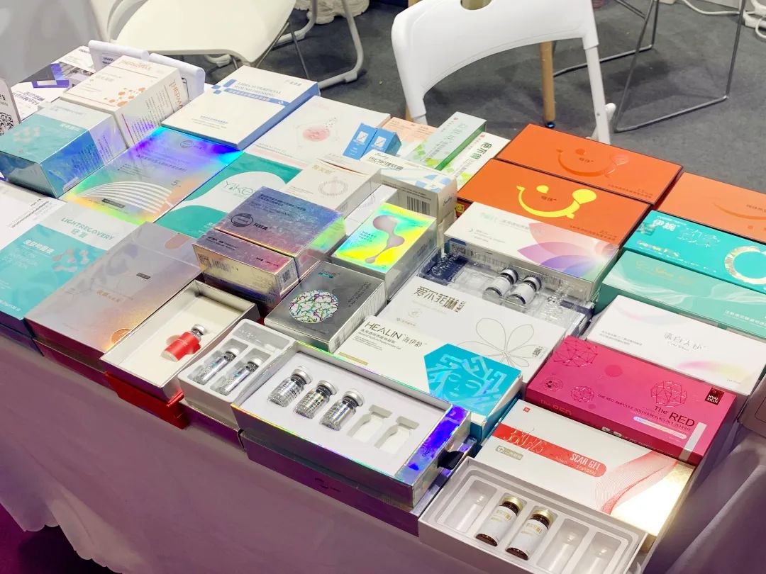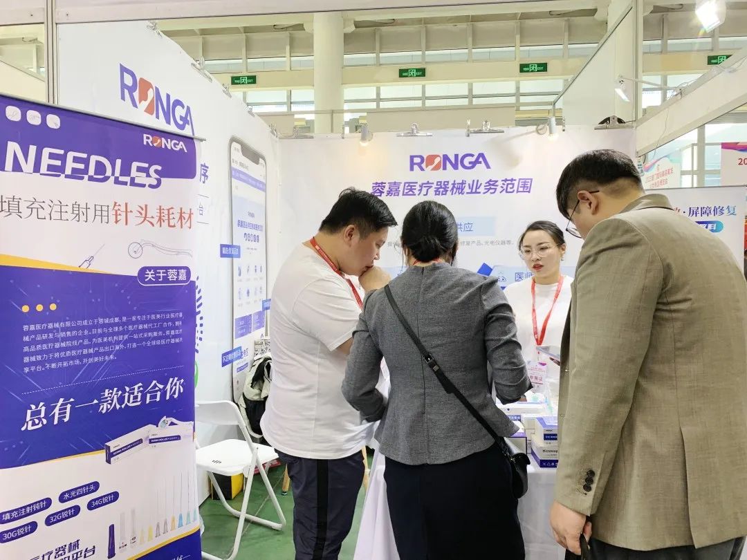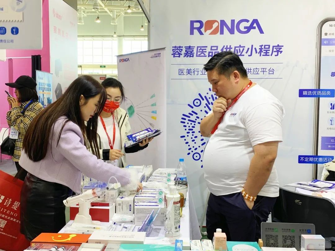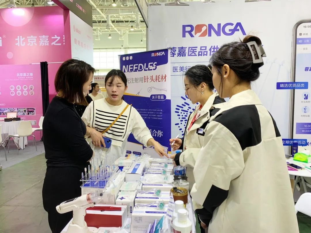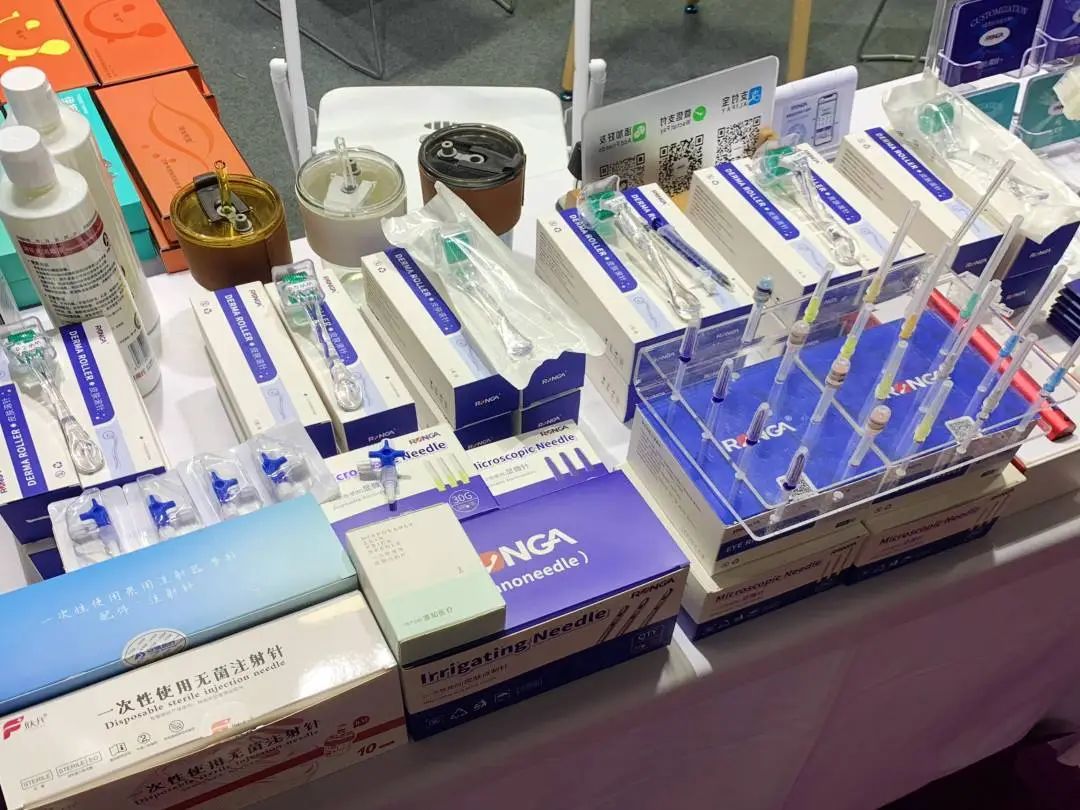 此次展会蓉嘉携带了针头、针筒、滚针、九针、三通等一次性耗材;玻尿酸、骨性填充材料、童颜针、溶脂针、颈纹针、熊猫针、动能素、水光针等针剂产品;麻膏、麻膜类术前镇痛产品;各类械字号修复敷料等。