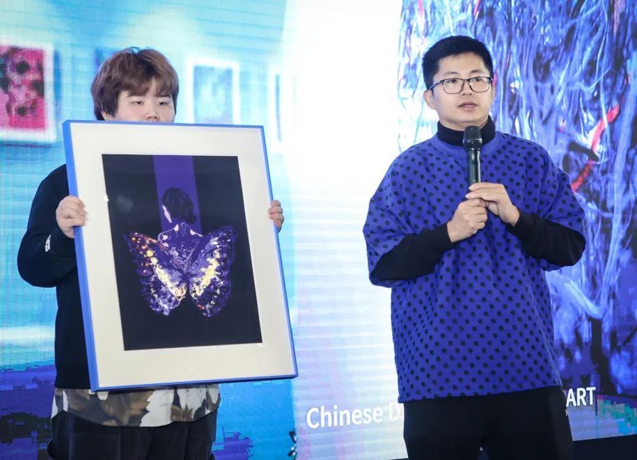 为现场观众一同带来艺术分享盛宴的还有蹬红走绿平台签约艺术家方士标、创意艺术家金一。方士标展示了他的版画作品《蝴蝶》等,希望借助画作去传达人生价值。《蝴蝶》中描绘的蝴蝶的翅膀并不完整,但仍然可以振翅高飞,象征现实世界中女性独立的人生态度。