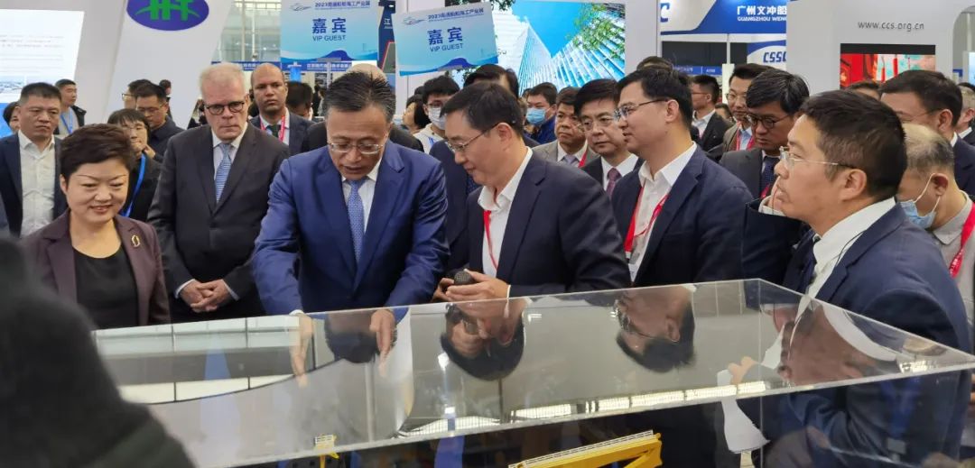 巡馆活动中,李瑞祥向胡广杰、张彤一行详细介绍公司展出的6600千瓦绞刀功率重型自航绞吸式挖泥船“天鲲号”、100人风电运维母船“至臻号”模型。胡广杰对振华重工产品在海洋工程领域发挥的作用给予充分肯定,对公司致力于打造中国领先、世界一流的船舶和海洋工程装备制造企业做出的贡献表示赞赏。他希望振华重工持续保持强有力的研发力度,以科技振兴产业,打造高品质的海工装备产品,为江苏船舶海工产业贡献力量。