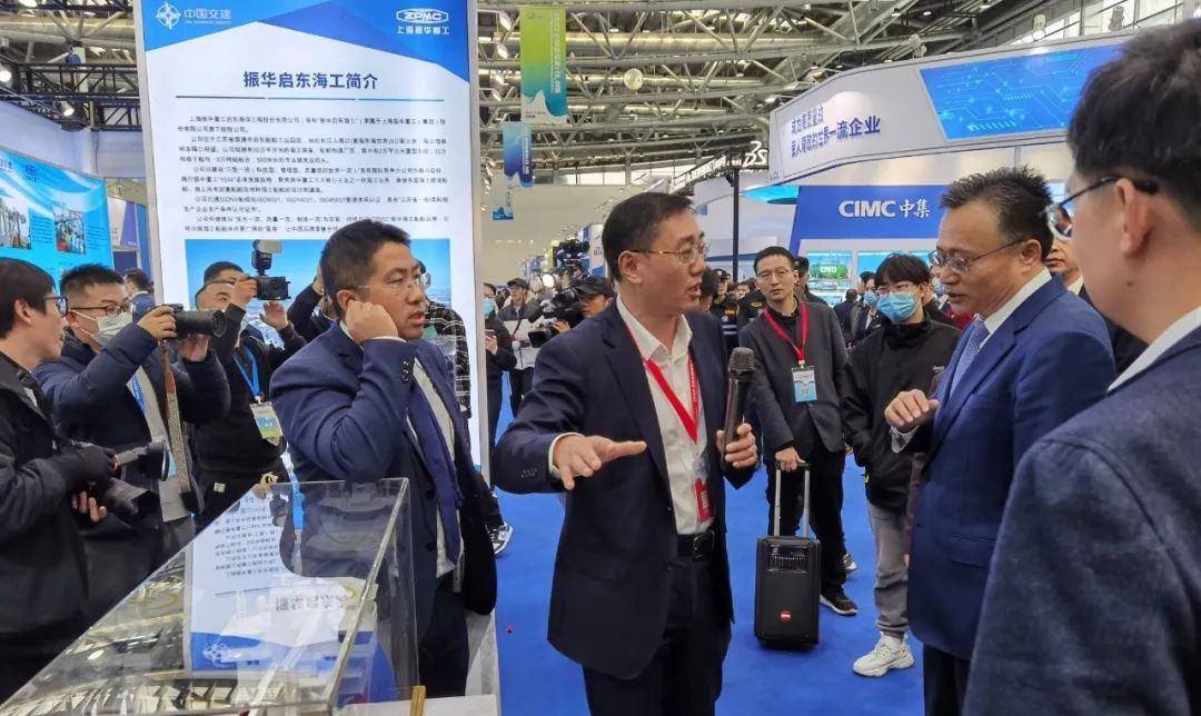 公司展台通过图文简介、产品模型、宣传视频等方式,展示了装备制造与研发能力,特别是“天鲲号”模型吸引了众多参展单位、合作单位及嘉宾前来参观。