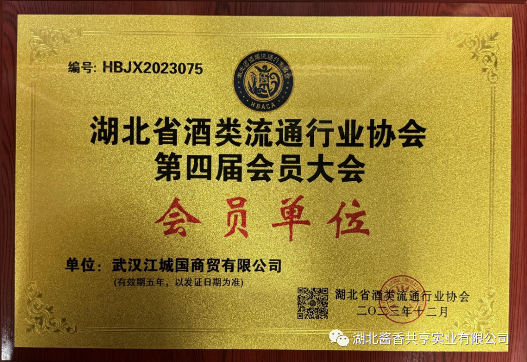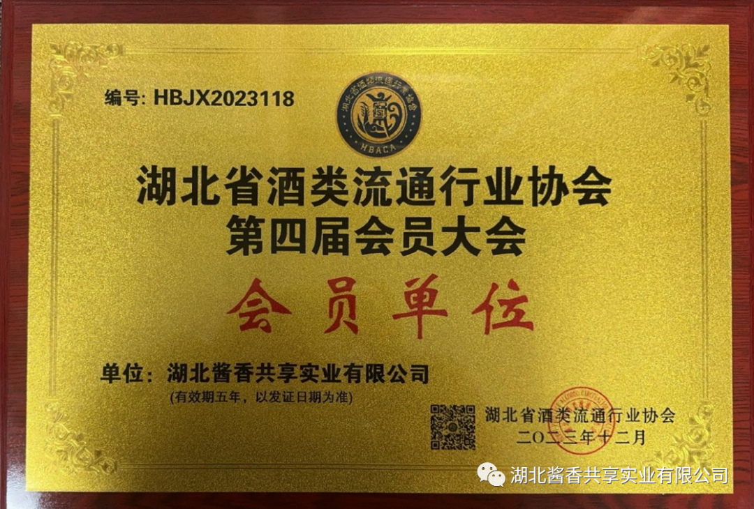 多年来,我司通过各类品牌活动的推广以及各类市场营销活动的深入开展,使我司代理的品牌形象深入人心,并获得了广大消费者的欢迎与青睐,销售业绩稳步增长。此次4家单位均获得会员单位的荣誉,不仅是对酱香酒在武汉市场建设与营销推广工作上的肯定,更是对我们一直以来坚持品牌打造、品质坚守以及践行社会责任的高度认可。未来,湖北酱香共享实业有限公司将继续坚持以人为本、诚信经营的理念,在谋求企业高质量发展的同时,努力为中国酒业的发展建设贡献更多力量!