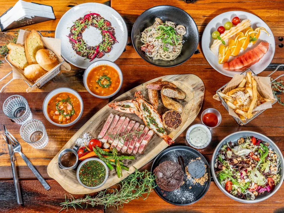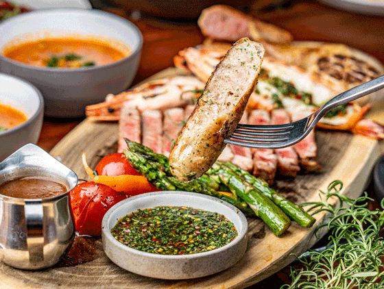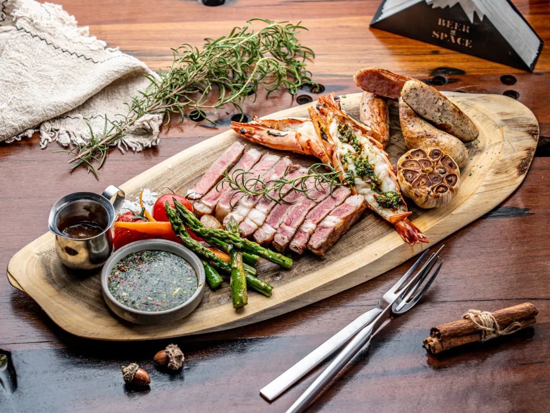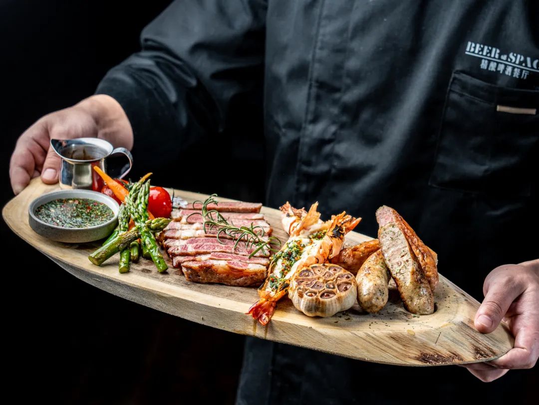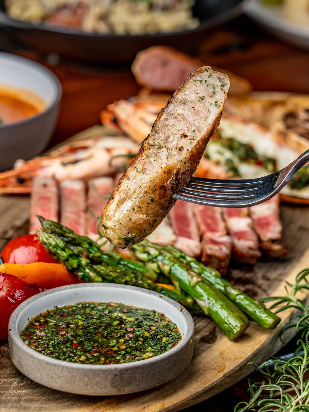 澳洲谷饲肉眼牛排+阿根廷大虾两只+纽伦堡香肠+蒜肠