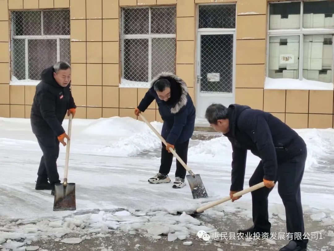 大家戴上帽子、手套,手持铁锹、扫帚等工具,同志们不畏严寒、不怕吃苦、齐心协力、热情高涨,奋力铲冰清雪,真正做到“以雪为令、即下即清”,全力维护良好环境和秩序。此次扫雪活动,极大地保障了居民出行安全,展现了惠民县农业投资发展有限公司全体职工积极向上的团队精神,以工作实效着力提升大家的获得感、幸福感、安全感。