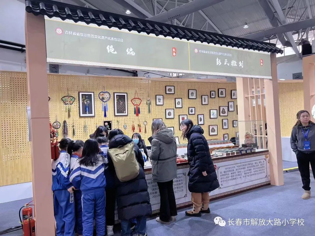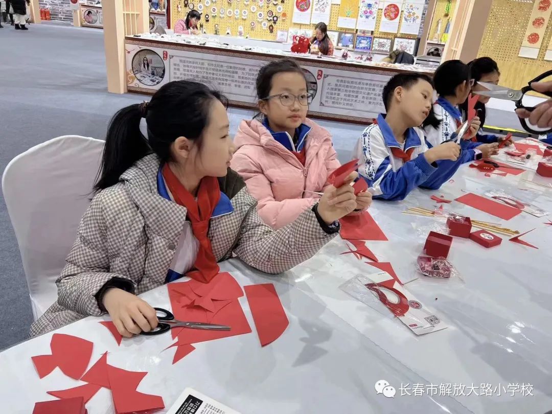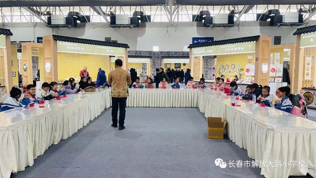12月16日,解放大路小学校四年级、五年级的部分同学在吴瑕副校长、刘爽主任、崔琬琳老师的带领下,走进长春国际会展中心体验非遗传承项目,开展校长币兑换心愿活动。