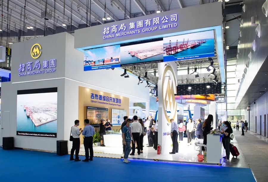 此次招商局展馆突出展示了各业务板块的综合发展成就、创新智能化建设特色及企业人文关怀,并现场呈现了吉布提综合开发业务模式(PPC)实景沙盘,给参观者留下了深刻印象。PPC综合开发模式实现了航、港、产、城联动,以港⼝带动产业园、物流、海⼯、⾦融等业务,相互促进、共同发展,展现了招商局在非洲的投资项目带动当地就业和经济发展,为当地注入发展活力,是招商局集团“以商业成功推动时代进步”企业使命的生动写照。