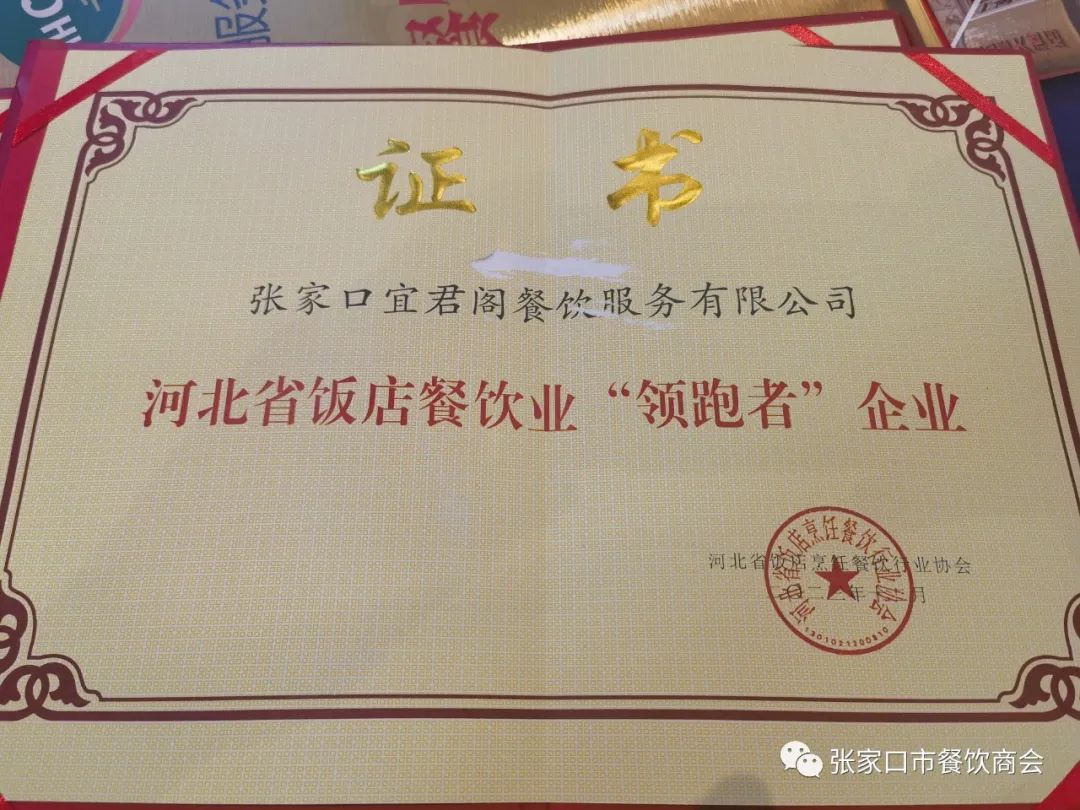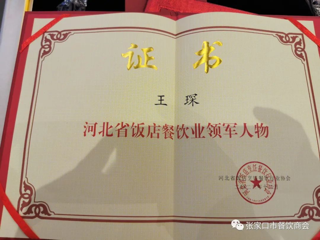 会上,省商务厅李东亮巡视员发表重要讲话。中国烹饪协会邓立副会长、中国饭店协会宋小溪副会长、中国烹饪协会名厨专委会孙晓春主席、省商业联合会陈彦报会长、省饭店烹饪餐饮行业协会吕毅华会长分别致辞。张家口市餐饮商会会长单位“香楼餐饮”,执行会长单位“小城故事餐饮”,常务副会长单位“国际大酒店”、“恒通酒店”,副会长单位“丽垣餐饮”、“王村姑老土炕”、“宴江南餐饮”,会员单位“东口码头”、“宜君阁”喜获“河北省饭店餐饮业‘领跑者’企业”荣誉称号。商会执行会长王强,常务副会长张政,副会长冯帆、王芳、白小军,会员王军、刘利军,以及“香楼餐饮”总经理王琛,“恒通酒店”总裁杨丽华被评为“河北省饭店餐饮业领军人物”。“宴江南餐饮”董事长魏玉华喜获“河北省饭店餐饮业终身成就奖”荣誉称号。