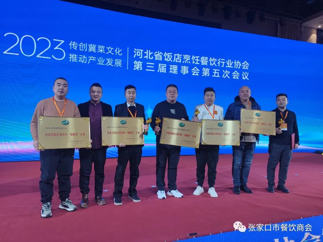 2023年12月13日,河北省饭店烹饪餐饮行业协会成立35周年庆典暨第五届中国冀菜产业发展大会在石家庄隆重开幕。河北省商务厅二级巡视员李东亮,中国烹饪协会副会长邓立,中国饭店协会副会长兼秘书长宋小溪,中国烹饪协会副会长、名厨专委会主席孙晓春,河北省商业联合会会长陈彦报,河北省商务厅服贸处处长李万英、四级调研员陈二峰,人民银行河北省分行货币金银处副处长李任飞、河北省饭店烹饪餐饮行业协会会长吕毅华、美团政企合作中心总经理张聪出席会议。张家口市餐饮商会执行会长王强带领商会8家餐饮单位参加大会并喜获殊荣。