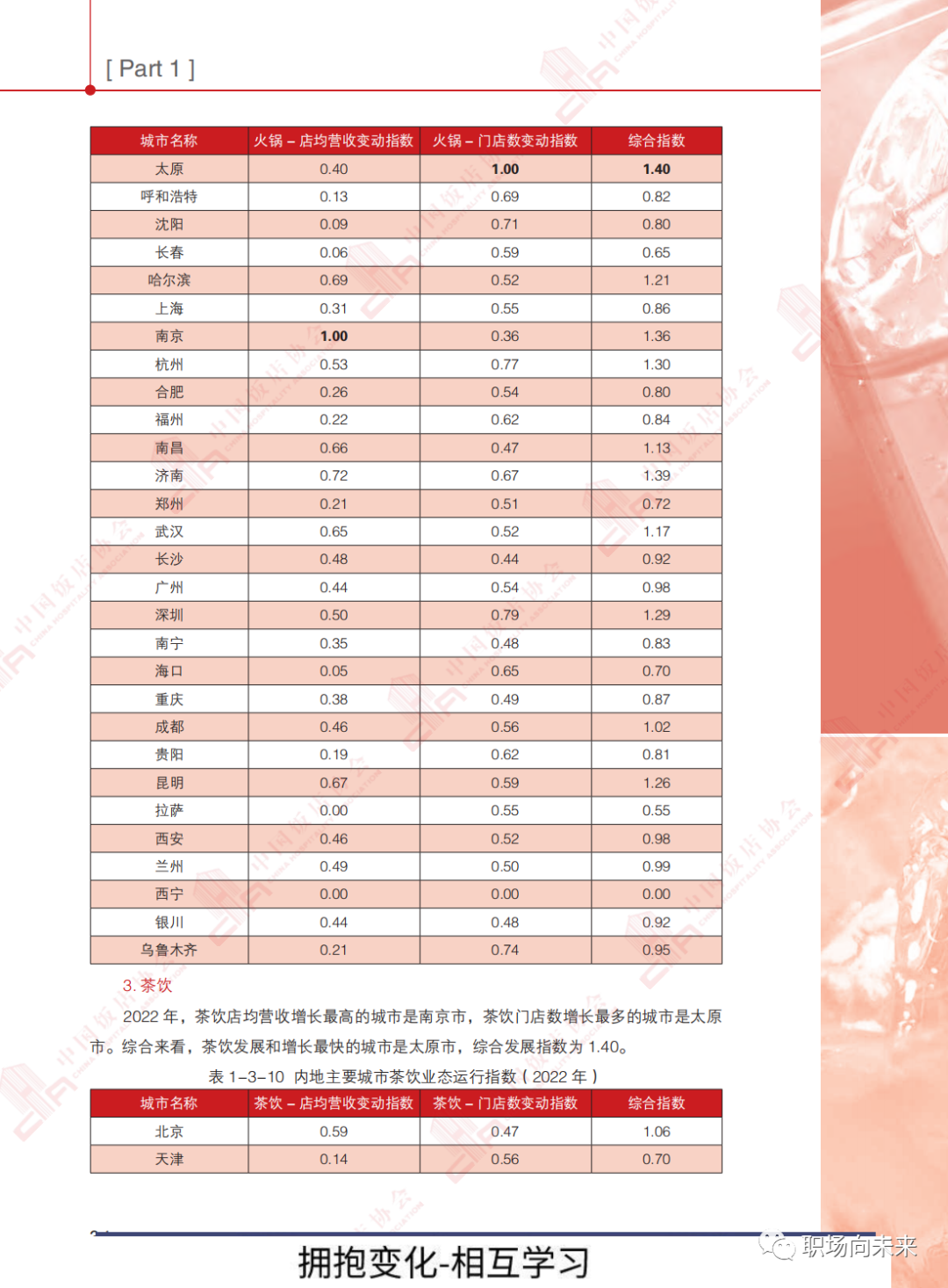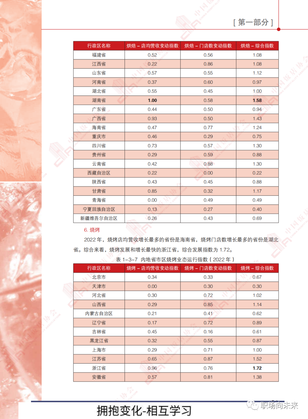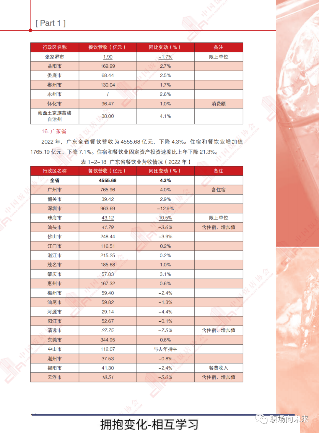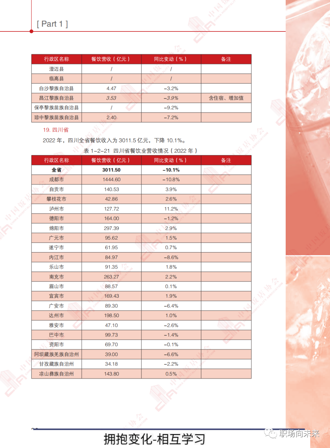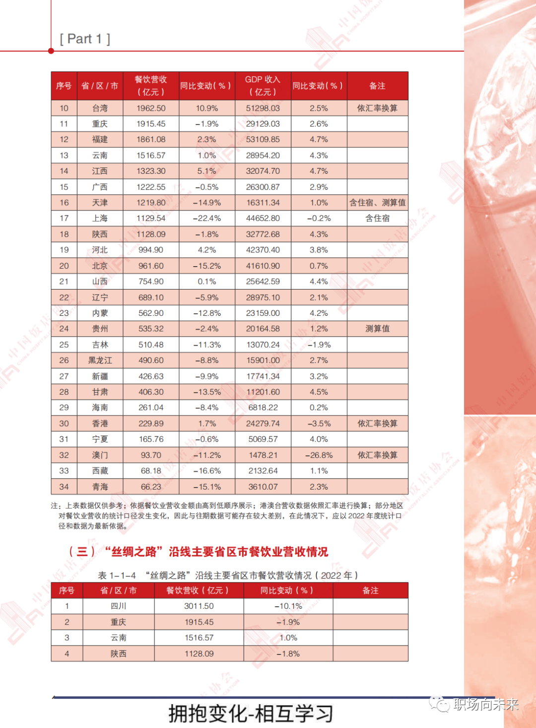 总体而言,受境外变异毒株持续输入影响,2022 年疫情多点频繁散发,餐饮行业波 动明显,市场受到较大冲击。全年行业收入同比增速仅在 1-2 月及 8 月呈现正值;3-5 月 受疫情影响出现明显低谷,此后呈缓慢回升趋势;而临近年底,疫情高发期来临,加上防 疫政策发生重大调整,新一轮大规模感染潮来袭,导致同比收入增速继续下滑。可以说, 2022 年全国餐饮行业营收情况,远要比前两年更为严峻。2022 年,河北全省餐饮营收为 994.9 亿元,比上一年增长 4.2%。住宿和餐饮业增加 值 358.3 亿元,下降 6.9%。住宿和餐饮业固定资产投资速度比上一年增长 14.9%。2022 年,山西全省餐饮营收为 754.9 亿元,比上一年增长 0.1%。住宿和餐饮业增加 值为 213.78 亿元,下降 2.0%。2022 年,内蒙古全区餐饮业营收为 562.9 亿元,下降 12.8%。零批住餐行业增加值为 1876.9 亿元,比上一年下降 4.2%。