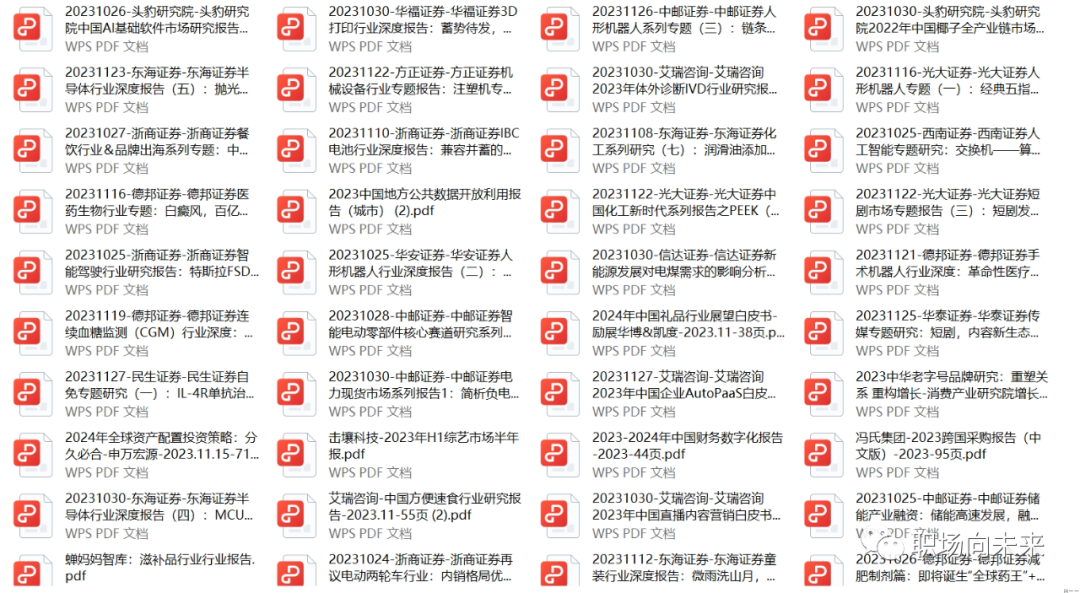 报告信息包含:TMT行业报告、医药医疗器械行业报告、金融行业报告、电子行业报告、新能源及电力行业报告、地产及旅游行业报告、智能制造行业报告、新材料及矿产报告、英文报告下载、电商及销售报告、消费者及人群研究报告、大消费报告、食品饮料酒水行业报告、化工行业报告、物流行业报告、教育行业报告、人工智能AI行业报告、云计算行业报告、节能环保行业报告、农林牧渔行业报告、餐饮业报告、化妆品行业报告、体育及用品行业报告、军工行业报告、光电行业报告、纺织服装行业报告、安全监控行业报告、服务业报告、航天通讯行业报告、经验干货、奢侈品及珠宝报告、宠物行业报告、母婴行业报告、检测行业报告、共享经济报告、新基建报告
