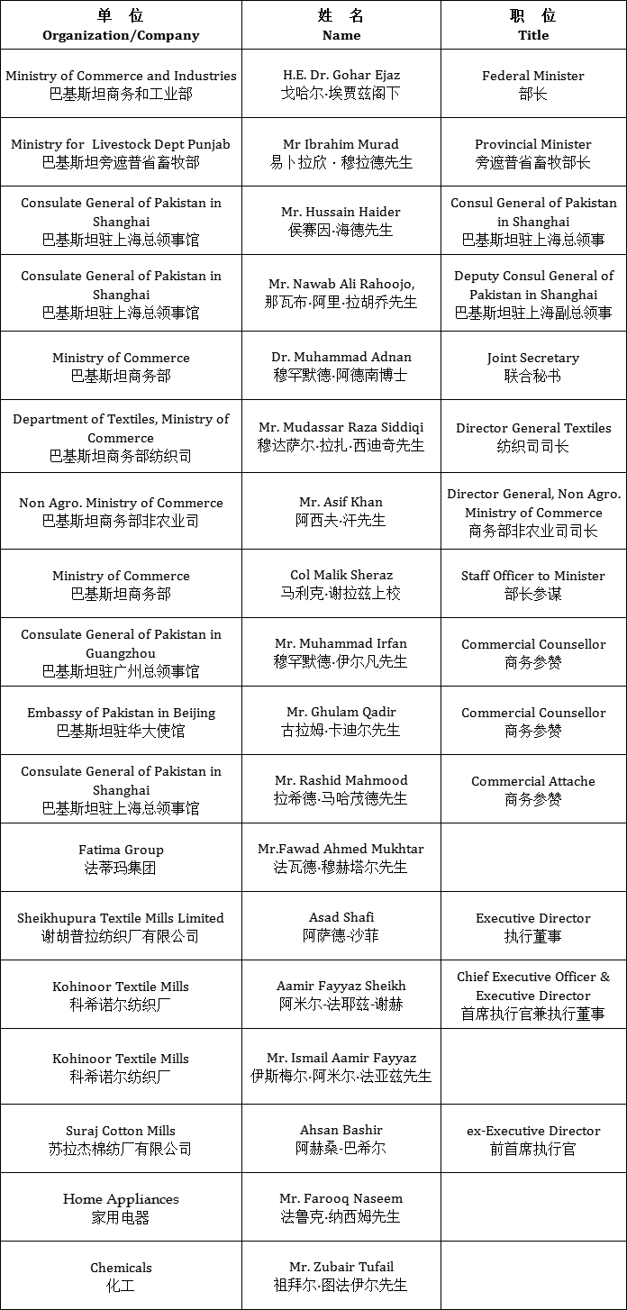穆达萨尔·拉扎·西迪奇司长也详细介绍了巴基斯坦纺织服装行业的现状,以及投资环境的优势和潜力,并对中国与巴基斯坦在纺织服装行业的合作充满了信心。