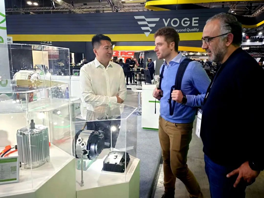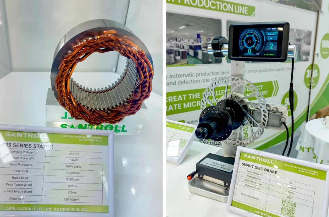 应用于电摩领域的发卡扁线电机和大功率电控产品,性能配置都属同级竞品中的佼佼者,受到不少国际客户的青睐,纷纷驻足停留,共同探讨电动化趋势。